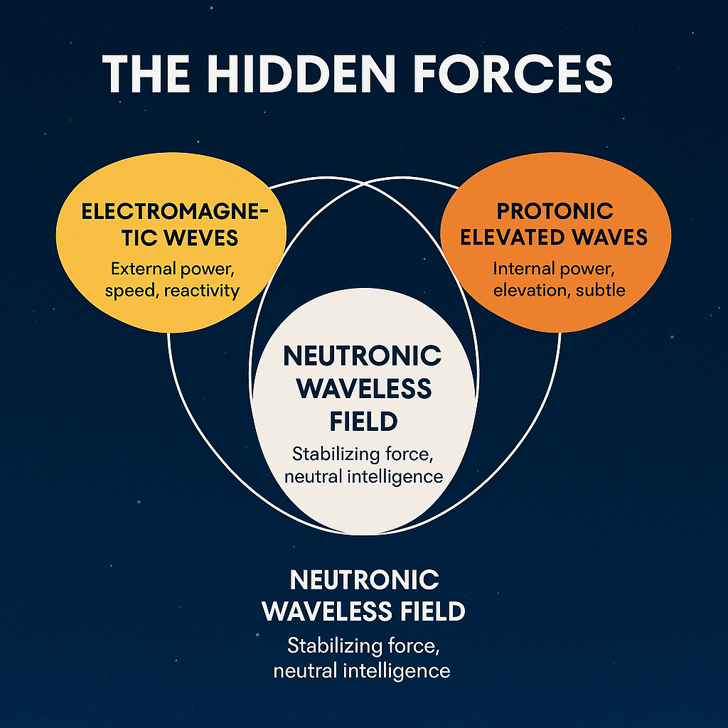The Earth, too, is sustained by its Neutral Field — the magnetic balance between its poles. The north and south represent electron and proton; the magnetic equator represents the neutronic bridge. When the planet’s electromagnetic core fluctuates due to solar or human interference, the Neutral Field absorbs the shock, converting imbalance into gradual motion.